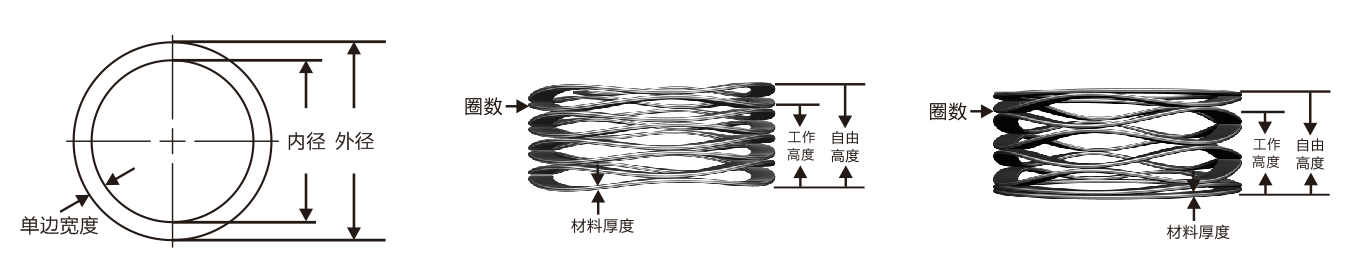 波形彈簧簡(jiǎn)稱(chēng)波簧,是金屬薄圓環(huán)上具有若干峰谷的彈性元件。通常應(yīng)用于載荷和變形量均不大,要求彈簧剛度較小需施加軸向預(yù)壓力的場(chǎng)合。